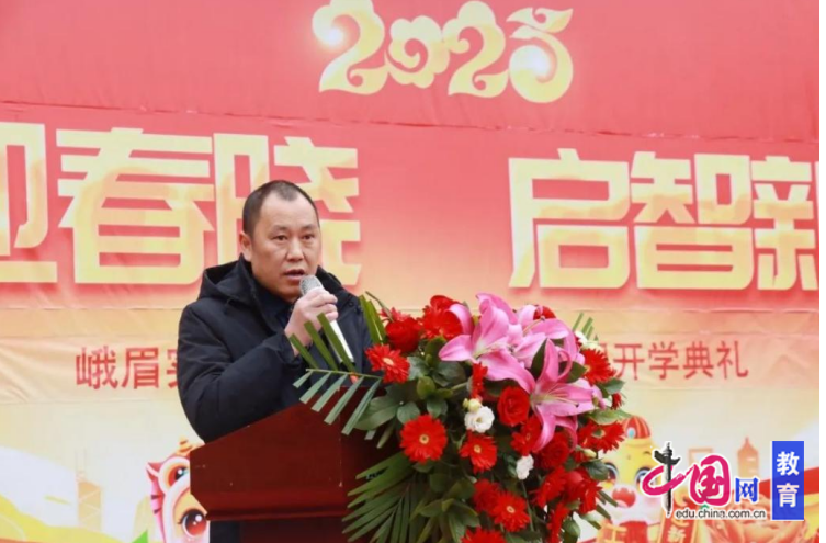 峨眉实小党总支副、校长徐建敏为开学仪式致辞?